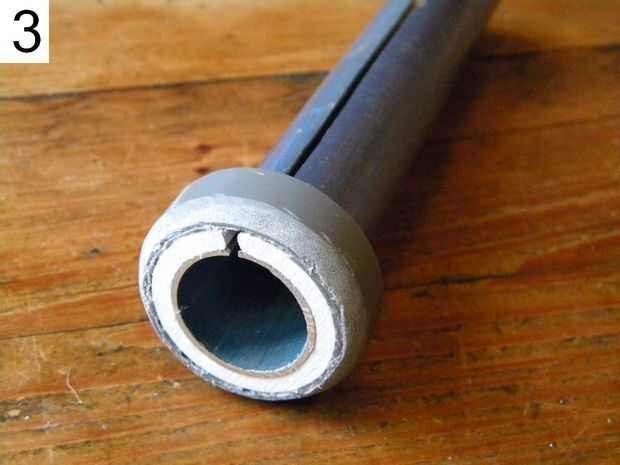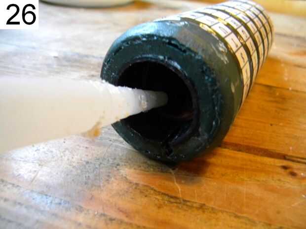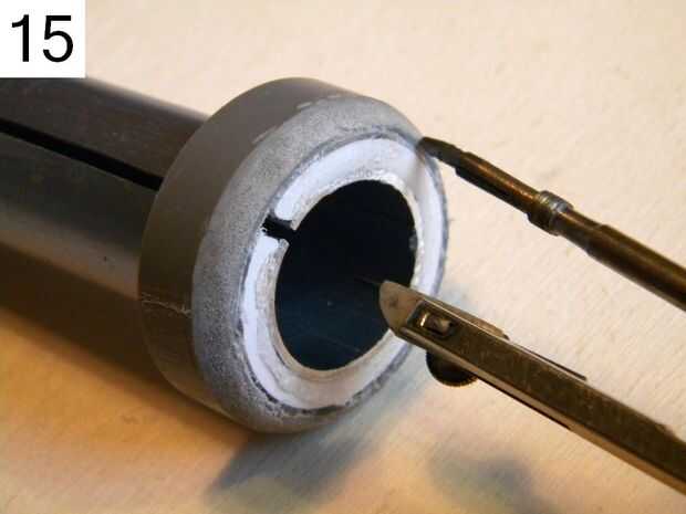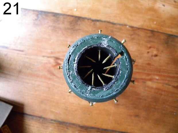 21: Primero perfore unos agujeros en el anillo que pega en el segundo tubo y poner clavos en ellos, también con pegamento.