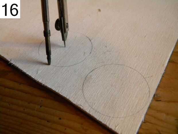 15: Medir esta radio con un compás (la pieza de madera irá sobre ella)
