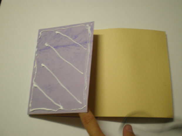 4. después de que el pegamento se haya secado, pega las tapas en las solapas de papel de construcción.