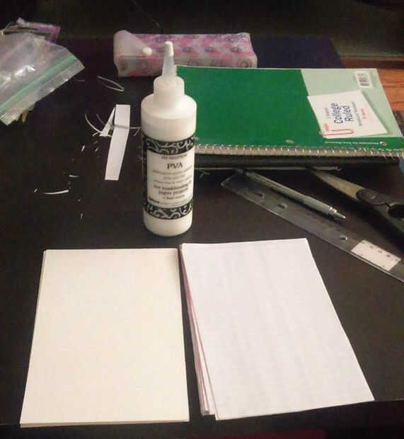 Asegúrese de que el papel y la cubierta están al ras donde desea que la columna vertebral. Entonces utilice el libro para colocar una capa fina por el borde del papel y la cubierta.