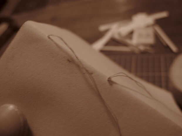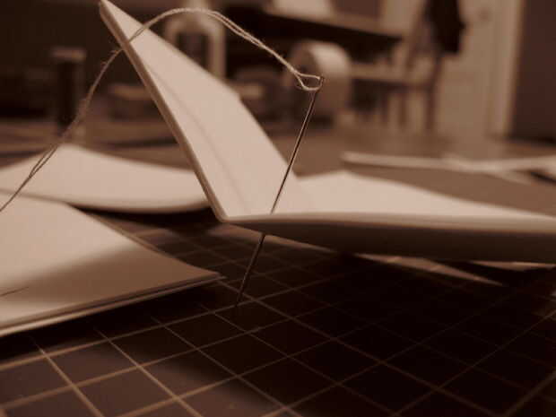 Utilice dos hebras de hilo para coser el libro y haga un nudo al final.