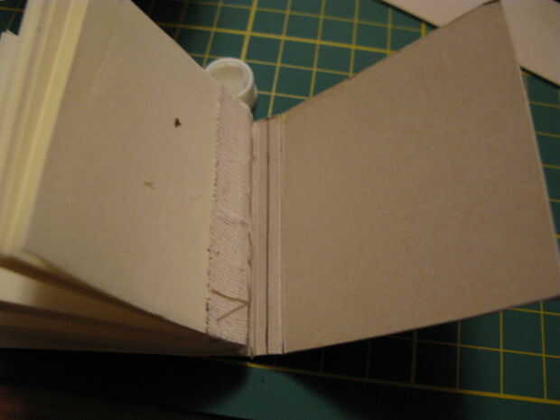 El exterior del libro en el interior de la tapa del pegamento. Cuando pegar deje un espacio entre la columna vertebral de la cubierta y el libro.