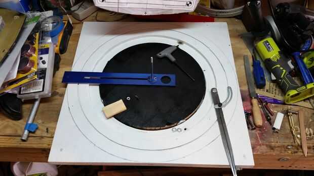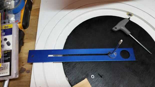 Para los que prestando atención a la imagen. Usted notará que tomé uno de los tornillos por lo que puedo conseguir un círculo máximo de 23,75 pulgadas en esa configuración.