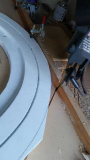 No tengo ni idea de cuántos tirones de 45 grados que hice hoy en la sierra. pero finalmente me puse la moldura áspera hacia abajo.