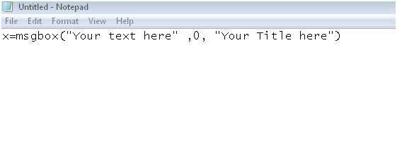 x = msgbox ("Texto aquí", 0, "Tu título aquí")Asegúrese de que la "está incluido en el texto y volver a colocar el su texto y su título aquí. Pero no cambia nada elese! Los usuarios avanzados pueden cambiar algo más.