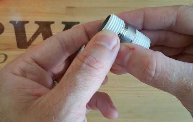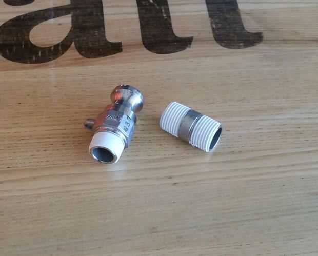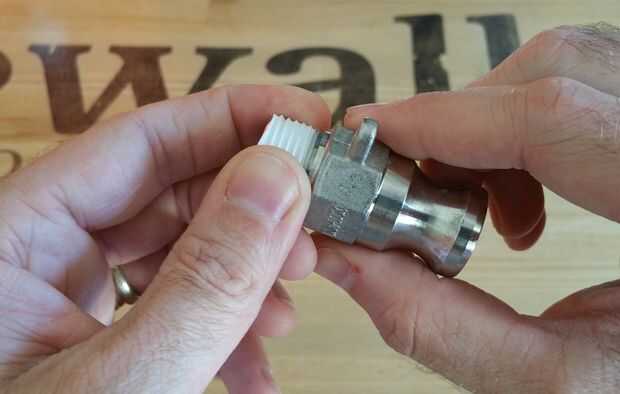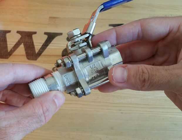 - Gire la rosca envuelta del Camlock (o ajuste de la salida de su elección) en la salida del cuerpo de la válvula.