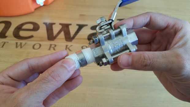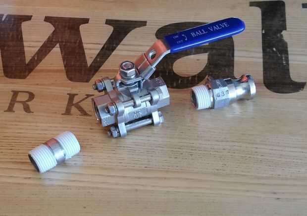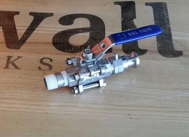Tiempo para montar la válvula. Yo uso acero inoxidable para todo mi equipo de preparación. Hace las cosas mucho más fácil en el lado de mantenimiento. Válvulas de tres piezas son agradables en eso demasiado. Puede desmontarse y limpiarse sin mucho esfuerzo. Se trata de cómo meto todo junto.