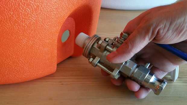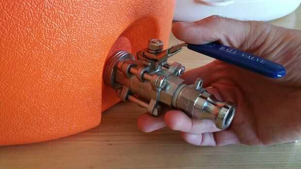 El refrigerador y el montaje de la válvula son ambos preparados para instalarse. Esto es donde tenemos que tener cuidado y asegurarse de que todo es a prueba de agua. No quiere estar en medio de maceración en (la cerveza término) y descubrir fugas. Ahora es el momento de encontrar y fijar.