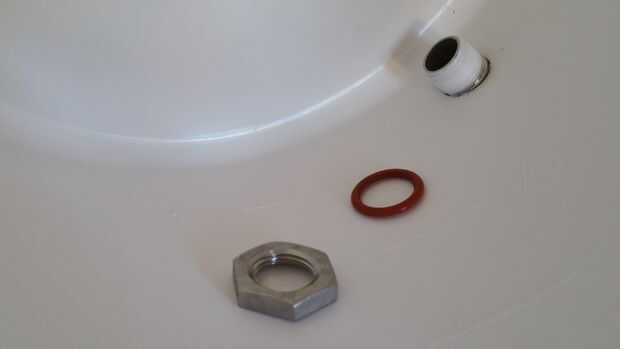 - Coloque tres arandelas en el montaje de la válvula. El iglú refrigerador requiere tres para asegurar que la válvula puede cerrar completamente sin el mango en la nevera. Si utiliza una marca diferente, necesitará ajustar tuyo para adaptarse.