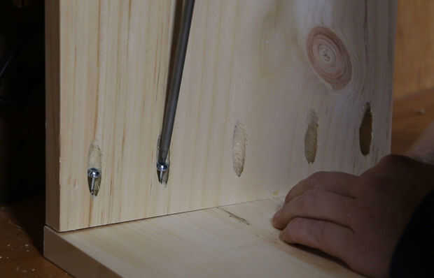 Una vez que todos los agujeros de bolsillo han sido perforados, montar el cuadro atornillando un tornillo en cada agujero del bolsillo. Asegúrese de que las placas son cuadradas y no torcida y empuje hacia abajo las tablas para que el tornillo se muerde en. He encontrado que utilizando una abrazadera grande para empujar las últimas dos juntas en la plaza fue de gran ayuda. Puede añadir una pequeña cantidad de pegamento a cada conjunto para reforzar los agujeros de bolsada, pero después de que lo montado, era sólida como una roca.