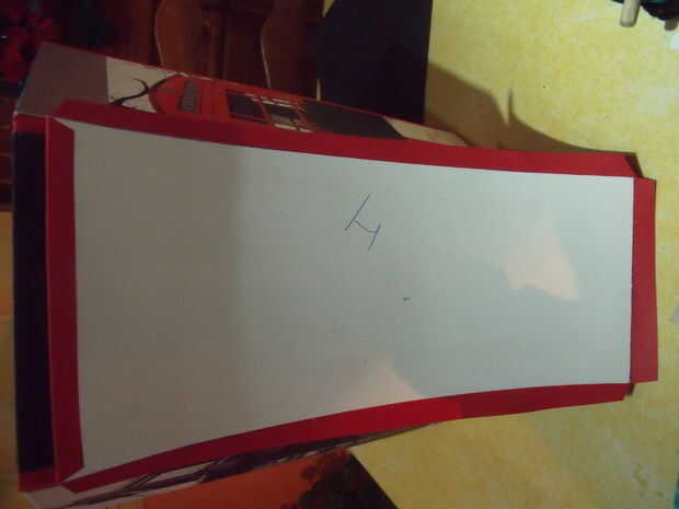Pegamento en todos los trapecios el segundo papel normal y cortar las esquinas en ángulo recto y pegar la parte superior del papel en la parte posterior de la cartulina.