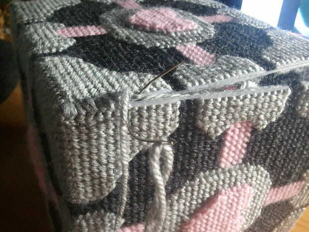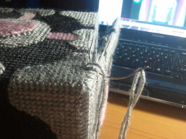 Para el lado pasado definitivamente necesitará usar la aguja curvada. Encontré que difícil al principio pero usted se acostumbrará a la forma de la aguja (como donde sale y que ángulo para coser en). Una vez más, su tiempo es la clave :)
