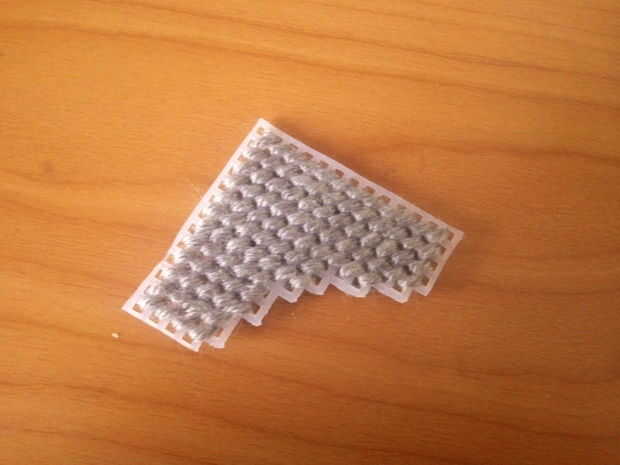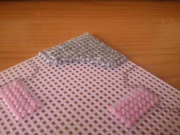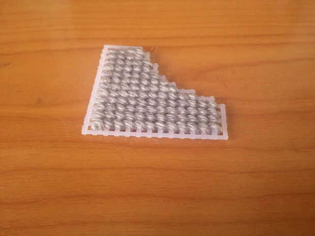 Después de que ellos ha cosido uso gris lana para colocar a cada uno corned en las plazas. Ver imágenes de ^