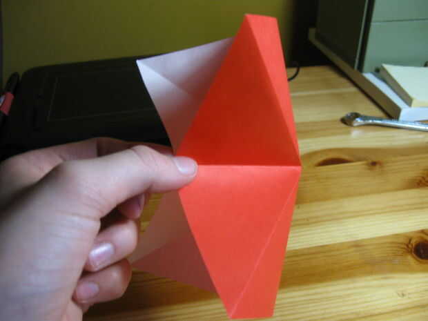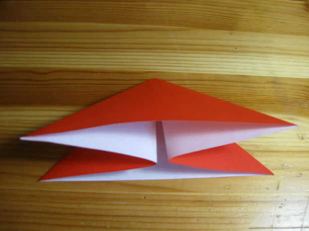 Siguiente, en el pliegue horizontal, (esto es difícil de describir) Apriete juntos y luego bajar todo desde arriba. Mira las fotos de orientación.