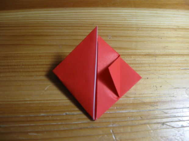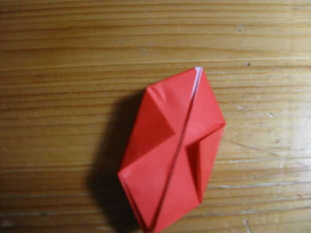 doblar la esquina de cada una de las aletas recién dobladas en el centro y repite en parte posterior.