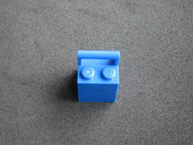 Ahora presten atención para poner el ladrillo de 1 x 2 al lado de la manija inclinada.