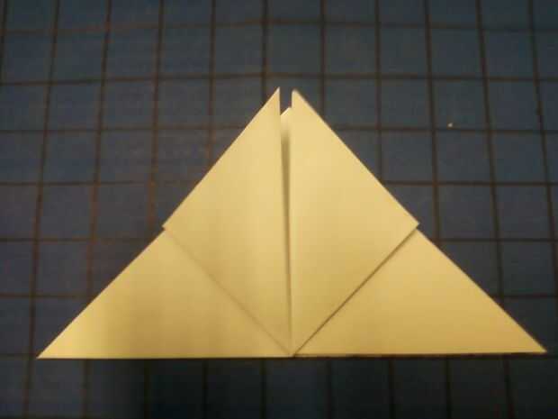 Doblar la parte delantera izquierda y delantera derecha esquinas hasta cumplir con la parte superior del triángulo, como se muestra.