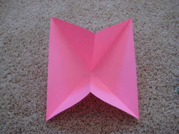 Ahora doblar los lados como se muestra en la foto. Esto se llama un doblez de la montaña. Luego doble hacia abajo como se muestra.