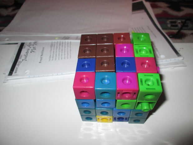 esto es una especie de cubo del rompecabezas. Hizo ver lo que podía hacer con el uso de cosas muy normales. Son todo tipo de formas que se ajustan en el cuadro como se muestra en la fotografía. Dio como un regalo para un intercambio de regalos.Paso 1