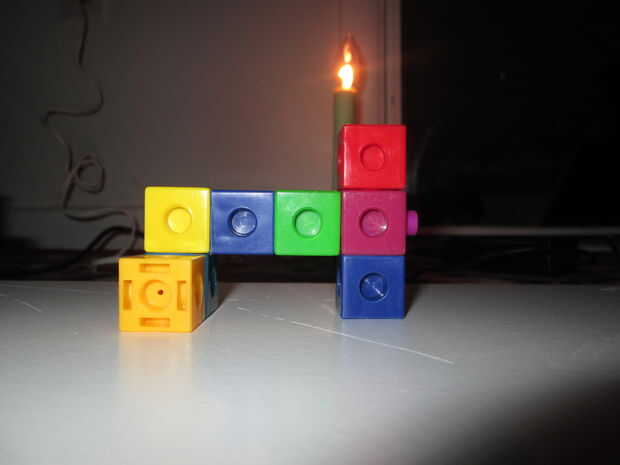 esto es una especie de cubo del rompecabezas. Hizo ver lo que podía hacer con el uso de cosas muy normales. Son todo tipo de formas que se ajustan en el cuadro como se muestra en la fotografía. Dio como un regalo para un intercambio de regalos.Paso 1