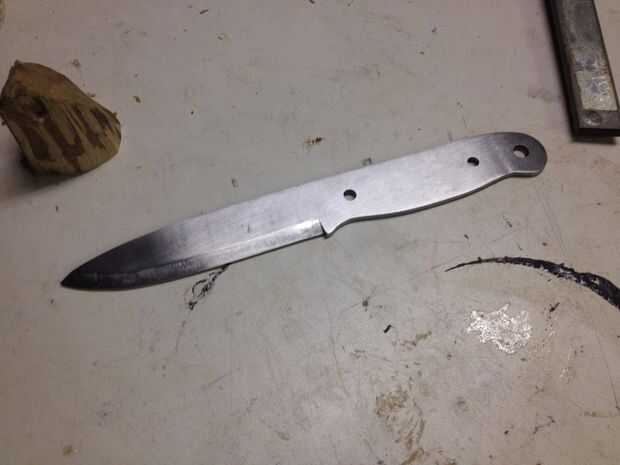 De todas formas, Haz unos agujeros en el tang donde usted quiere las clavijas para ir. También puse un agujero de cordón en la parte inferior, pero no tienes que, dependiendo de la navaja de estilo que está haciendo.