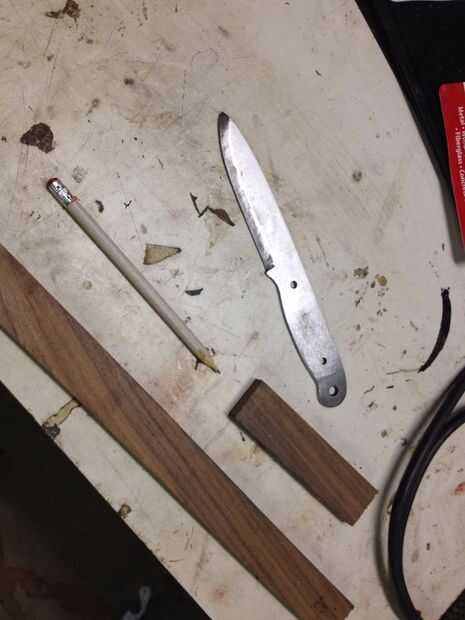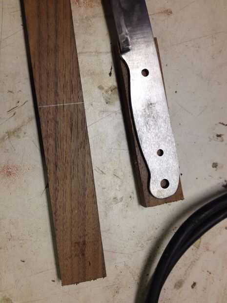 El primer paso para la manija es encontrar su madera. Utilicé color nogal oscuro, porque parece bastante y lo tenía en la mano, pero puede utilizar cualquier tipo de madera dura, como es muy seco. ¿Por qué muy seco? Porque si no es así, la deformación y después del encogimiento y arruinar completamente su cuchillo.