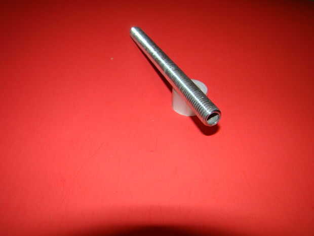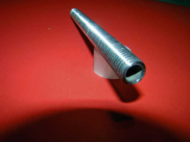 Usted empezará con el corte hasta la longitud deseada y teniendo una barra roscada (prefiero redondo de 1/2"). Dependiendo del tamaño y forma de la espiga del cuchillo, necesita perforar a la varilla roscada... Para ello, necesita hacer un agujero por el centro de la longitud aproximadamente redonda 5/16"- 3/8" y 2 1/2"- 3" profundo. Si se trata de una espiga cuadrada, tendrá ser cortado a la medida de la longitud y lijar el espesor de un agujero redondo.