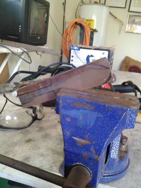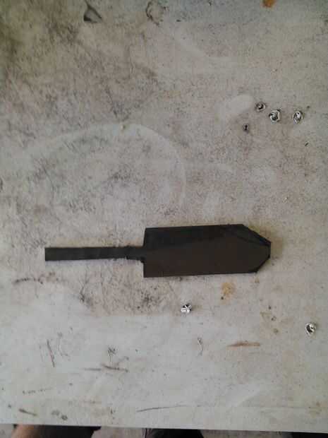 Cada paso para hacer un cuchillo de una hoja de la cortadora de césped está en este video. Por favor, haga clic en la imagen para ver el video. Es lo mínimo que necesita:HornoYunqueMartilloPinzas de largo alcanceguantesdelantalPegamento epóxicoabraza