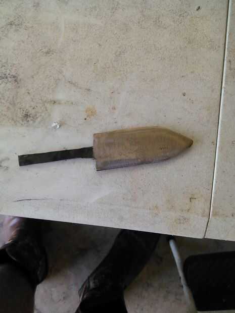 Cada paso para hacer un cuchillo de una hoja de la cortadora de césped está en este video. Por favor, haga clic en la imagen para ver el video. Es lo mínimo que necesita:HornoYunqueMartilloPinzas de largo alcanceguantesdelantalPegamento epóxicoabraza