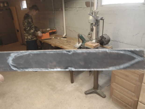 Usted puede hacer una plantilla de cartón pero marcó justo en el acero. Usé un pedazo de piedra natural porque permanece encendido incluso con calor.