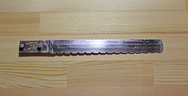 Quité la cinta del paquete y la madera podrida. Como se puede ver en la segunda foto, hay cuatro remaches metálicos.