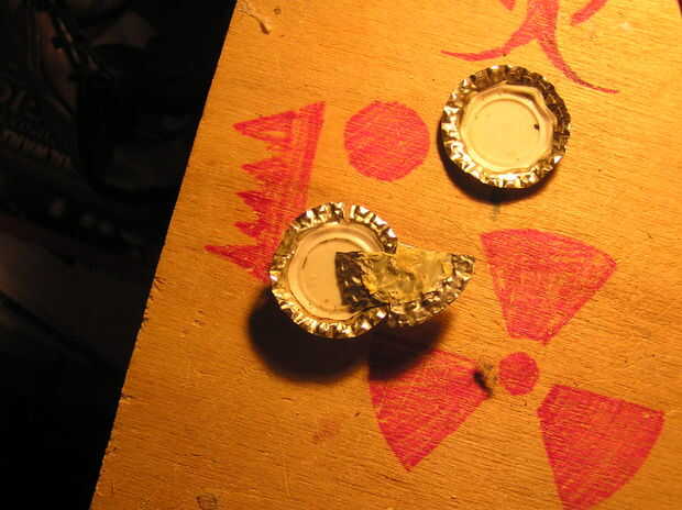 Cómo hacer un cuchillo de supervivencia de 3 tapas de cerveza y un remache. (3 / 6 paso)