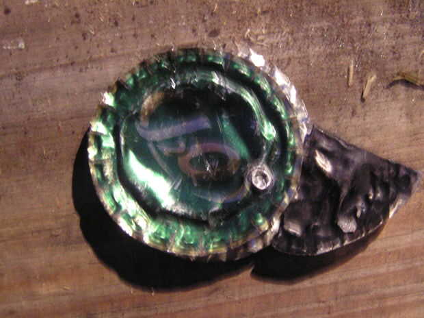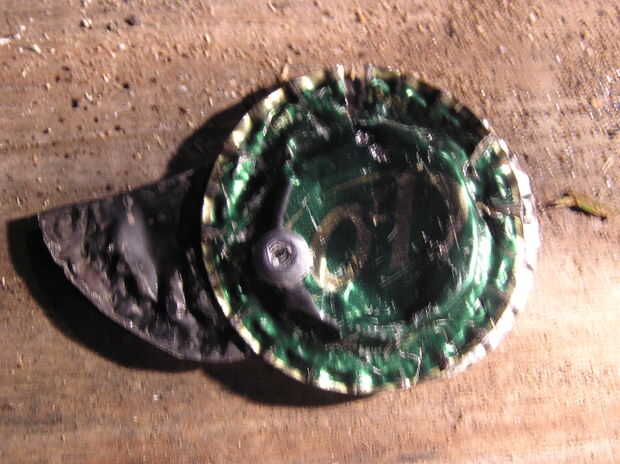 Cómo hacer un cuchillo de supervivencia de 3 tapas de cerveza y un remache. (5 / 6 paso)