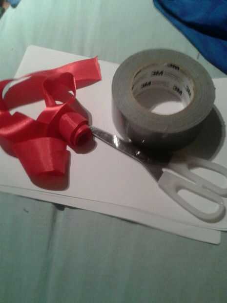 Es papel y tijeras y un trozo de lind rojo y alguna cinta (negro) pero no encontré uno negro por lo que hacer con gris y cola