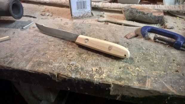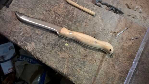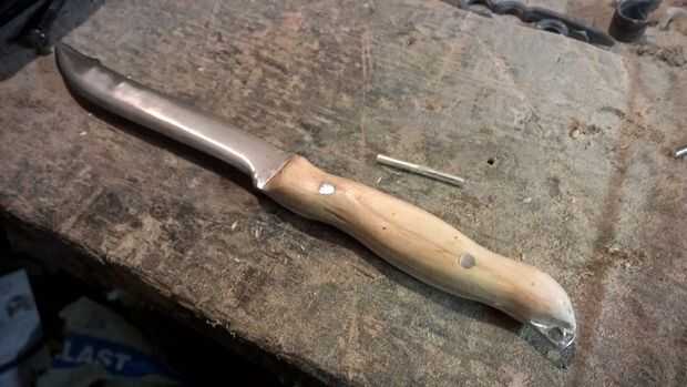 Con el mango totalmente formado comencé repasando lo que había hecho con una sucesión de granos de la lija; a partir de grano 240 y trabajando a través de los 320 y 400 para conseguir un bonito incluso, mango liso acabado. Al final el mango tenía un brillo muy leve a él como si había sido pulida un poco - ya está listo para algún tipo de tratamiento.
