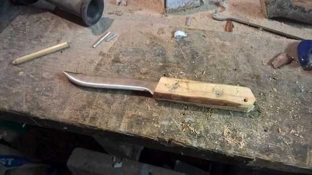 Después de que el epoxi haya curado completamente (mina tomó alrededor de 48 horas en lugar de 24 debido a su ambiente de curado), quite la cuchilla del vicio y suavemente la fuerza de la manija, cualquier movimiento y usted necesitará epoxy más y luego otro 24 horas más o menos a curar totalmente y endurecen una vez más.