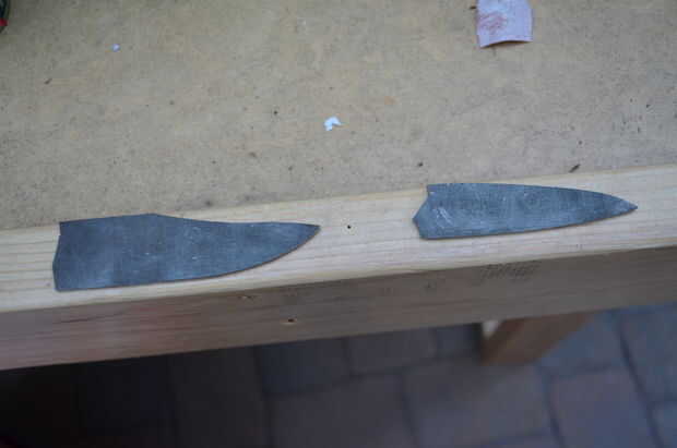 También, cortar las losas de mango en este momento. Hace más o menos precisa. La parte más importante es tener los dos agujeros.