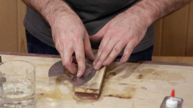 Hice unos toques finales con una piedra de afilar y asegurándose de que el la parte trasera era completamente plana.