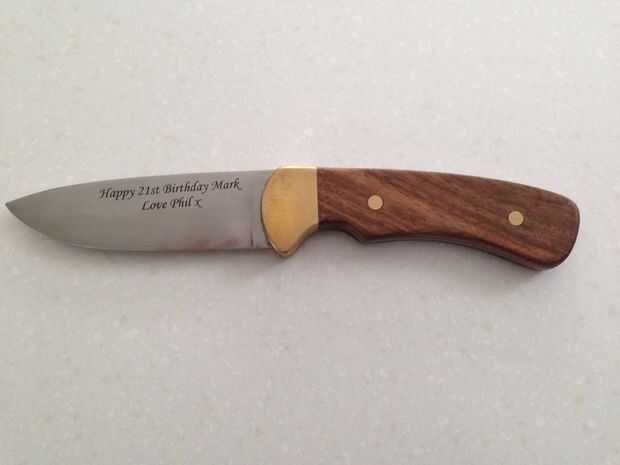Como me estaba haciendo este cuchillo como un regalo, decidí obtener un láser de mensaje grabado en la hoja. Mayoría de los lugares recomiendan laser grabado en acero al carbono como la mayoría de las herramientas del grabado se hace con los mismos materiales como la hoja y probablemente les dañará. Tampoco podría conseguir algo grabado en el disco, grabado o grabado en el mango. Este paso no será para todos, así que no dude en saltar si usted sólo desea tener un cuchillo funcional!