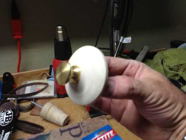 después de secado, he quitado el tapón y utilizar mi dremel con una lijadora de tambor para estrechar el orificio interno para que el polvo le sale cuando llegó el momento de vaciar el cuerno. imagen, un extremo pequeño del embudo hacia el extremo grande del cuerno.