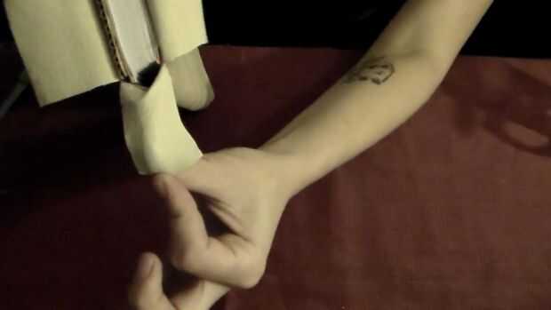 materialescuero gruesocordón de cueroherramientasgolpe de espumapara hacer el cestus de cuero inspiradas en asesinos creed la hermandad que puño sacó la forma de mi mano hasta los dedos y como mi dedo pulgar en un pedazo de cuero dejando sobre un mar
