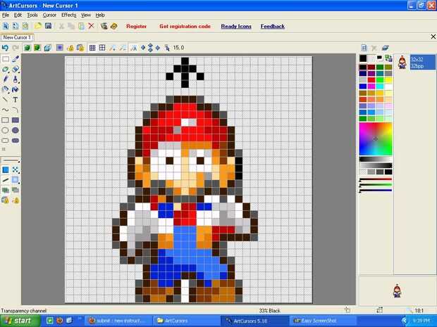 imágenes de Google o sitio web similar. Voy a usar un sprite del juego al azar que aparece en mi cabeza. Y lo primero que pienso es mario. (crédito a A.J. Nitro de recurso spriters para sprite.) Dibujar su diseño cerca de su punto de caliente y luego guardarlo en el escritorio o una carpeta.