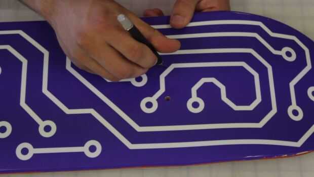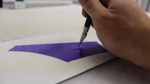 Con su cuchillo del Exacto, recorte el exceso de vinilo pesca a 45 grados y guiando a lo largo de la junta con el dedo. A menos que seas un experto, el borde no va a salir perfecto, así que no dejes que te molesten. El borde conseguirá batir hasta cuando empiezas a patinar todos modos!