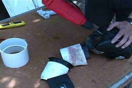 Siguiente tomé aparte ese viejo Rolodex y cortar un semicírculo en un extremo para ayudar a montar sobre mi hombro. Entonces usando un taladro hice 5 orificios en la base de Rolodex (pedazo del hombro) y 5 en el labio de cada panel de plástico.