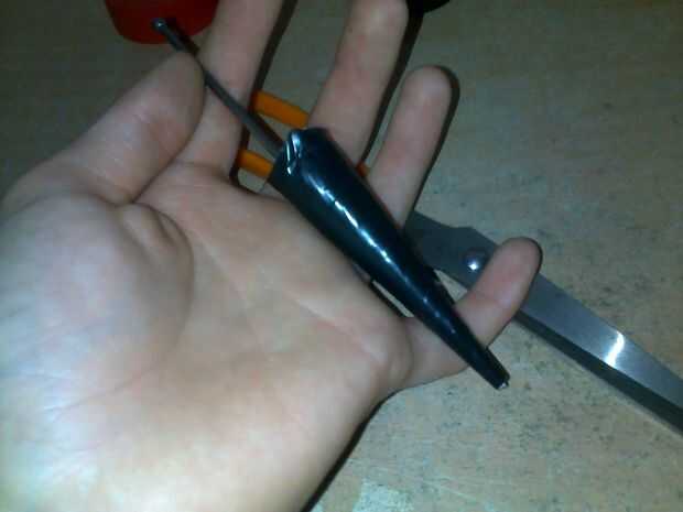 obtener su otra cinta de color y wrapo alrededor de la uña y encima el cono para que el clavo no va nada