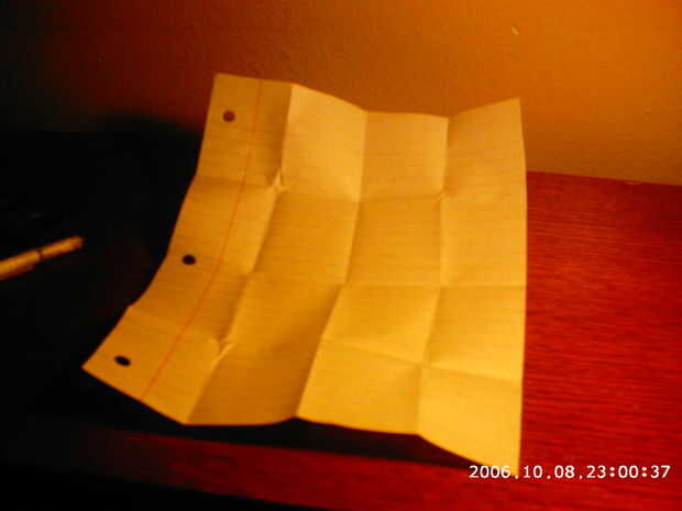para hacer la aleta debe doblar el papel en hafe, doble agin intell usted obtener un papel más pequeño entonces antes y luego de doblarlo