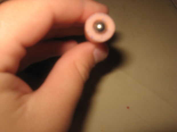 Paso 1: herramientas Tachuela Nerf dart y miniPaso 2: La bala de nerf y tomar de la parte naranjaPaso 3: La parte naranja y tirarla y girar la bala para que el fondo original es superiorPaso 4: Entonces pero la bordada sobre ellaPaso 5: Luego empujeP