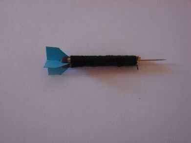 esto es un simple dardo se puede realizar en menos de 5 minutos. Puede utilizarse como dardos de repuesto para un tablero de dardos. ADVERTENCIA Este dardo es considerado como un arma no lanzar este dardo en cualquier persona o animal. No soy responsable por cualquier daño causado por un dardo como esta.