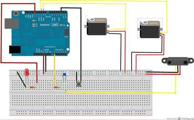 2) Conecte el servo (centinela) para breadboard y el pin 9 del arduino