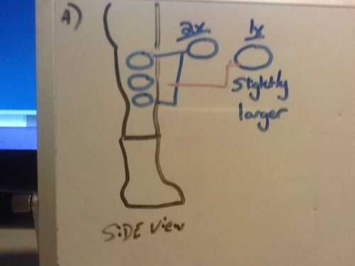 4 vaya a cada lado del muslo, en un pequeño, grande, grande la pequeña orden. (foto A)... el juguete tenía 4 círculos, el cómic tiene a veces 3.